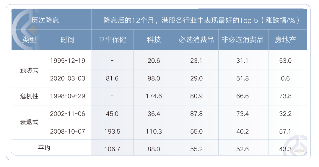 还是以史为鉴,在历次降息的12个月内,区间涨幅均值最高的5大行业分别是卫生保健(106.7%)、科技(88%)、必选消费品(55.2%)、非必选消费品(52.6%)和房地产(43.3%)。细分来看,半导体、汽车及零部件、制药和生物技术、生产技术设备等高端科技制造行业表现亮眼。