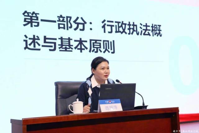 本次培训紧扣司法审查核心要求,聚焦行政执法实践中的痛点难点问题,特邀湛江经济技术开发区人民法院行政庭范丽萍副庭长授课,重点围绕行政执法概述与基本原则、行政执法常见问题及案例分析、行政案件争议问题答疑等方面,系统讲解了司法审查视角下行政执法行为的合法性、合理性要求。参训学员纷纷表示,此次培训内容紧贴工作实际,既有理论高度,又有实践深度,具有很强的指导性和可操作性。